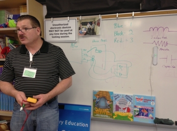 David Collingham greets Mr. Malory, retired teacher from the Fontana High School, who mentored David while he got his ham radio license. He came to see Ham Radio back in the classroom 40 years after he started it at Fontana High School. |